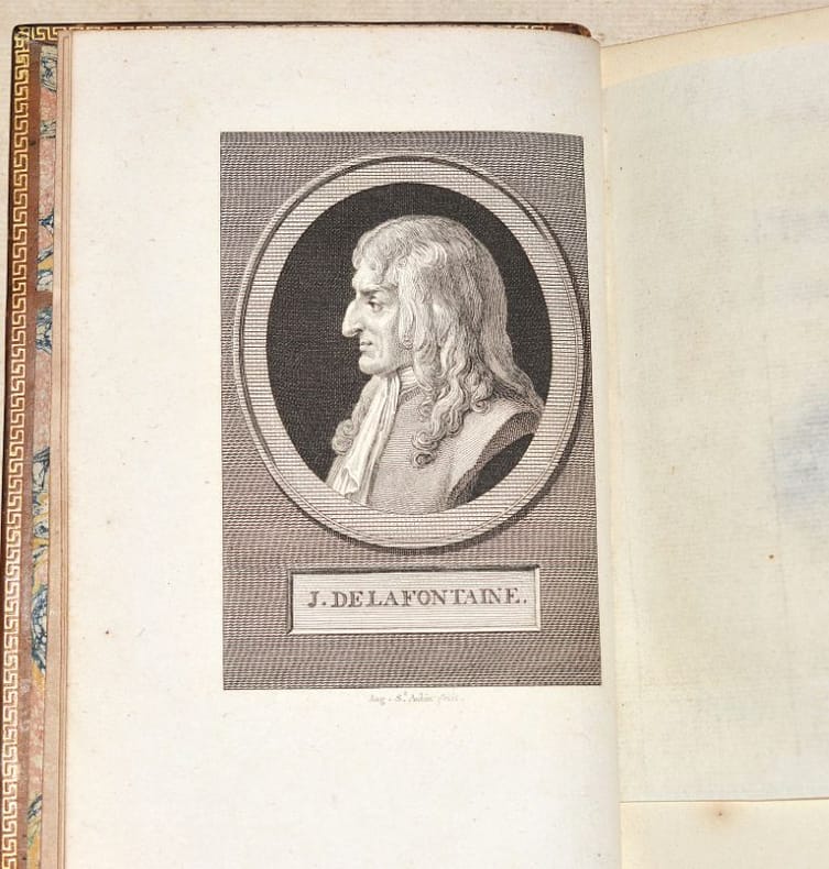 CONTREFAÇON DE L'ÉDITION DES FERMIERS GÉNÉRAUX (1762), attribuée à la Société Typographique de Bouillon. Elle est illustrée de 2 FRONTISPICES gravés par Vidal, 2 PORTRAITS d'Eisen et La Fontaine (celui d'Eisen, gravé par Ficquet, est ajouté), 2 vignettes de titre, 2 en-têtes, 43 culs-de-lampe et 80 FIGURES hors-texte gravés à l'eau-forte d'après les dessins de Charles EISEN (1720-1778), l'UN DES PLUS FAMEUX VIGNETTISTES du XVIIIe siècle qui fut également professeur de dessin de la marquise de Pompadour. Cette illustration des "Contes" de La Fontaine, qui a longtemps passé pour la plus réussie du XVIIIe siècle, est considérée comme son chef-d'oeuvre. (Cohen, 571 : « contrefaçon assez jolie, avec texte encadré » - Rochambeau, 90). BEL EXEMPLAIRE, conservé dans une reliure d'époque de qualité. NICE COPY. PICTURES AND MORE DETAILS ON REQUEST.