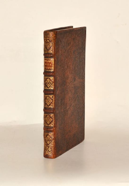 1777 Paris, Bailly, 1777. In-12 (173 X 103 mm) basane brune, encadrement d'un double filet à froid sur les plats, dos lisse compartimenté et orné, pièce de titre maroquin havane, coupes et coiffes filetées, tranches marbrées (Reliure de l'époque) ; (1) f. blanc, XVI-461 pages, (2) pages d'approbation et privilège, (1) f. blanc. Habiles et discrètes restaurations à la reliure.