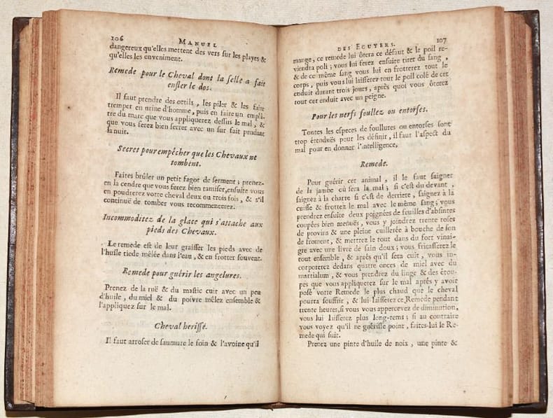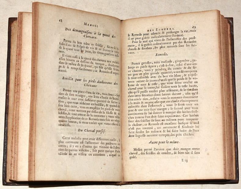 MANUEL DES ECUYERS, ou Recueil des differens Remedes pour la guérison des maladies qui arrivent aux chevaux & autres Animaux servant à l'utilité de l'homme.